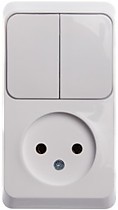 Блок ОУ Schneider Этюд роз. 16А + 1 кл. выкл. 10А бел. (земля, шторки) BPA16-201B