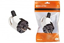 Вилка 16А 250В (АБС-пластик, угловая с ушком, белая, земля) TDM SQ1806-0005