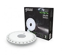 Фонарь кемпинговый Gauss 24LED 300lm 3xR6 белый магнит и карабин GF003