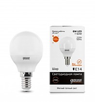 Лампа светодиодная E14 Gauss Elementary Шар G45 6W(420lm) 3000K 2K 82x45 матовая, пластик/алюм. 5311