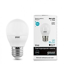 Лампа светодиодная E27 Gauss Elementary Шар G45 8W(540lm) 4100K 4K 82x45 матовая, 53228