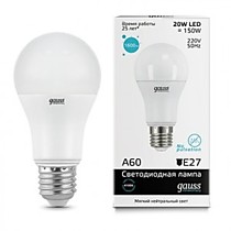 Лампа светодиодная E27 Gauss Elementary ЛОН A60 20W(1600lm) 4100K 4K 120x60 матовая, пластик/алюм. 2