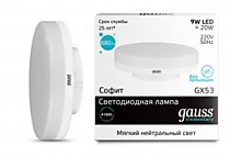 Лампа светодиодная GX53 Gauss Elementary 220V 9W(680lm) 4100K 4K 75x24 пластик/алюм.83829