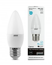 Лампа светодиодная E27 Gauss Elementary Свеча 6W(450lm) 4100K 4K 100x37 матовая, пластик/алюм. 33226